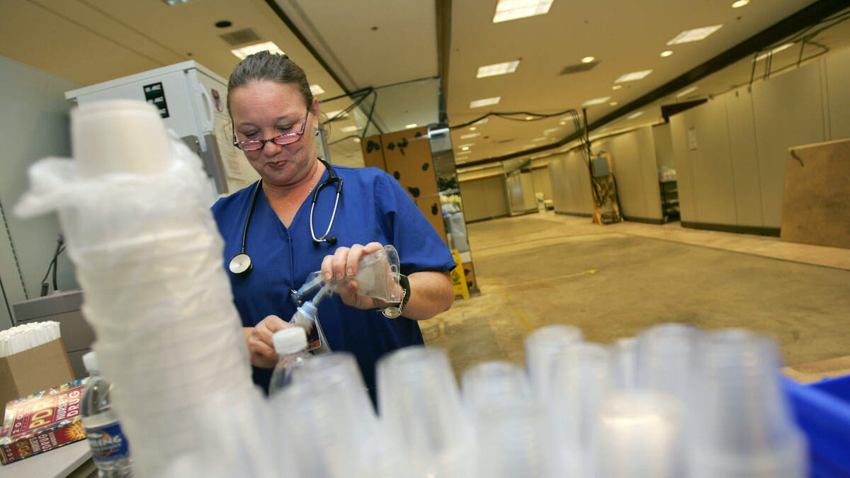 Nurse Sheri Pellagalle prepares intavene